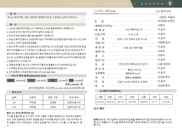 2026년 3월 1일 주일예배