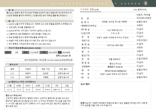 2025년 10월 26일 주일예배