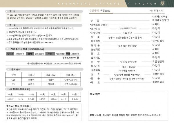 2026년 1월 18일 주일예배