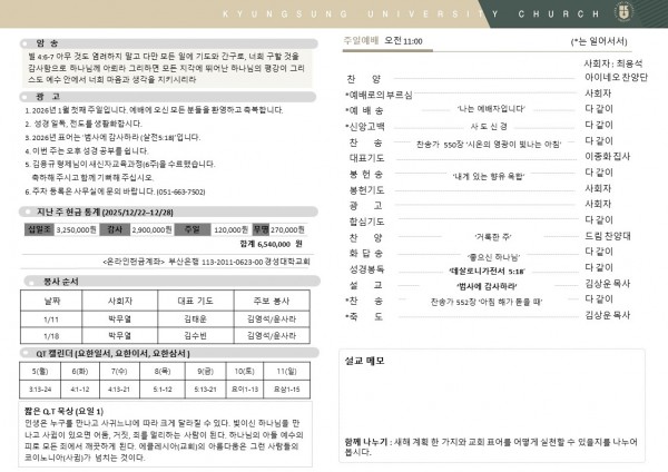2026년 1월 4일 주일예배